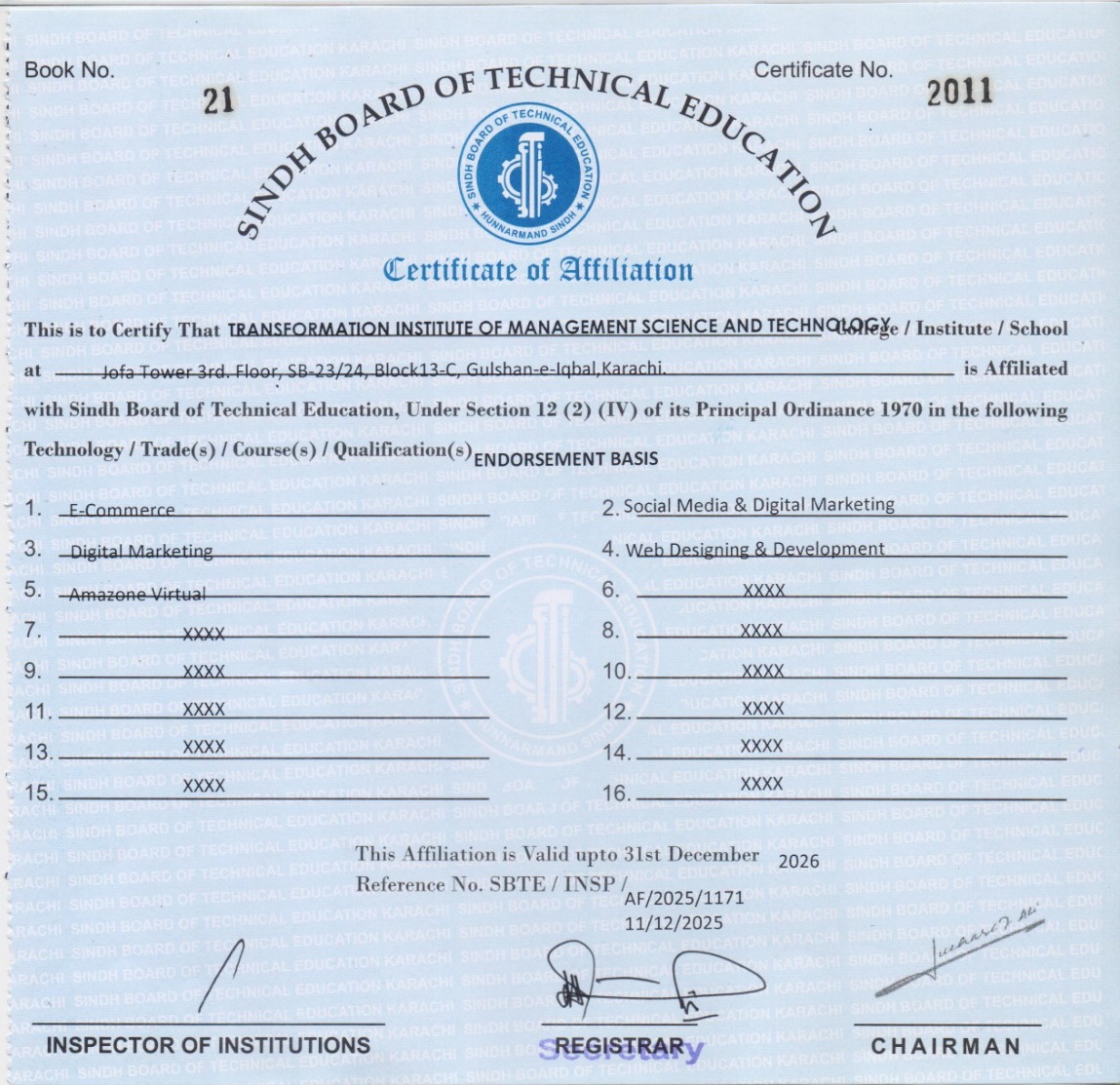 Tax Exemption: Approved Under Section 2[36][C] Of The Income Tax Ordinance, 2001 As Non Profit Organization From Federal Board Of Revenue. [NTN #7224534-0][PCP Certification No: PCP-R2/2025/677]